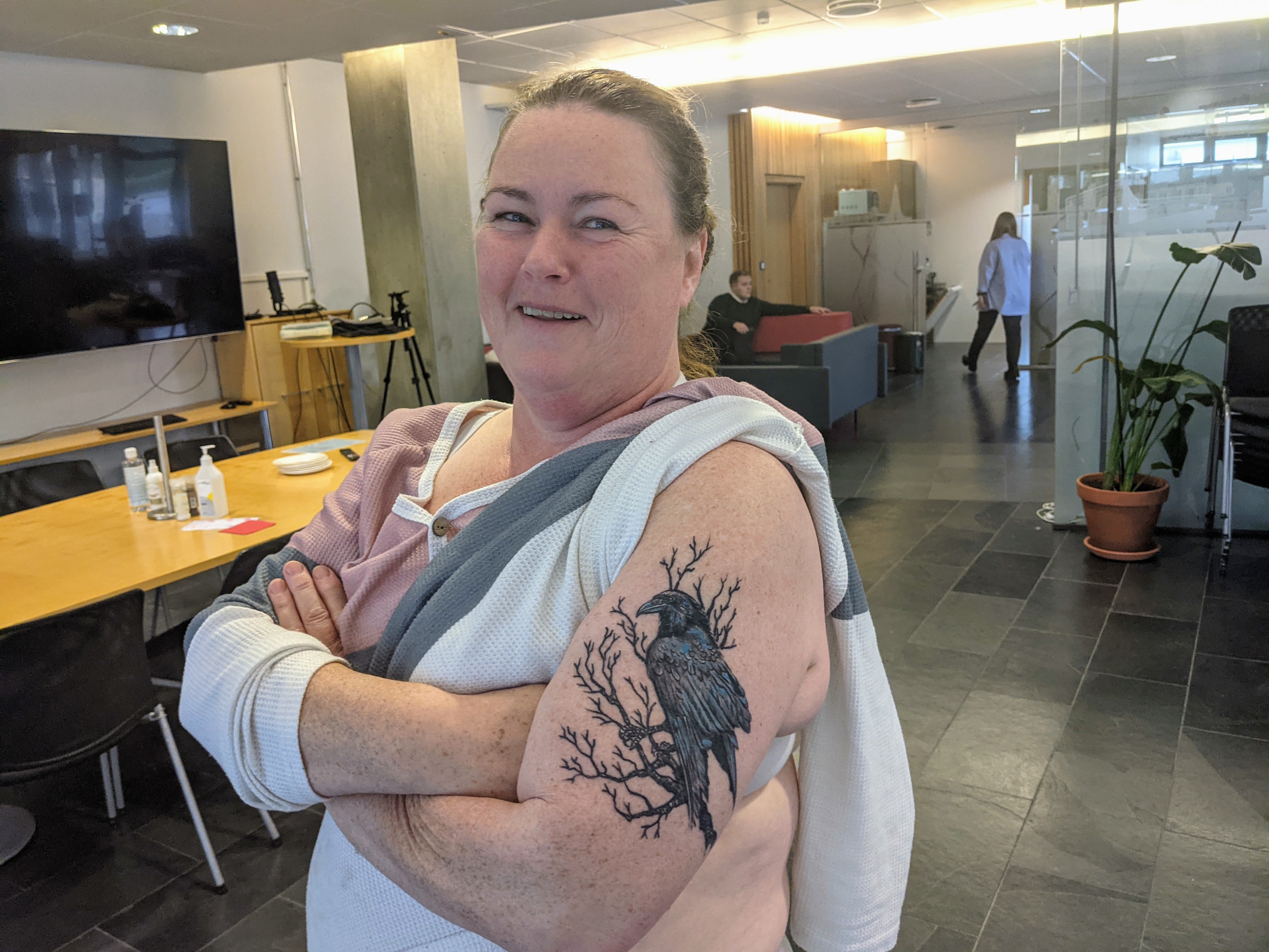 Fékk sér krummaflúr um daginnMig hefur langað í tattú í mörg ár og daginn eftir að ég var búin að taka ákvörðunina um að láta flúra hrafn á upphandlegginn, settist hrafn á vegg hjá vinnunni og krunkaði á mig, eins og til staðfestingar. Hrafninn hefur verið minn fugl síðan ég var lítil.