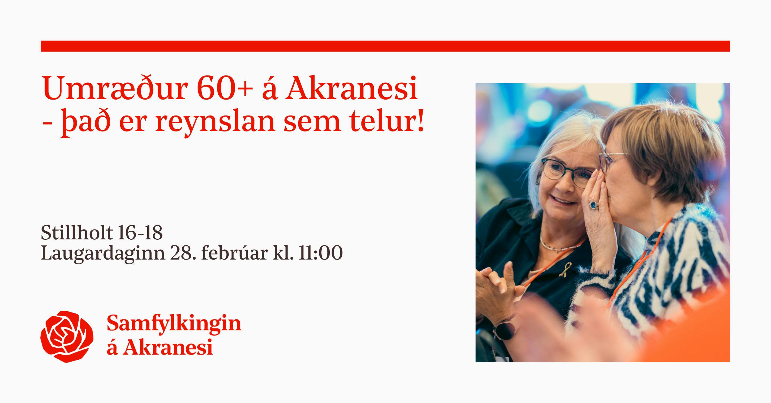 Af hverju ættir þú að mæta? Reynsla okkar félagsmanna sem eru 60 ára og eldri er dýrmætasta vopnið okkar í þessari kosningabaráttu. Við þurfum ykkar sýn á húsnæðismálin, heilbrigðisþjónustuna, skipulag bæjarins og hvernig við gerum Akranes að besta bænum á Íslandi til að eldast í.