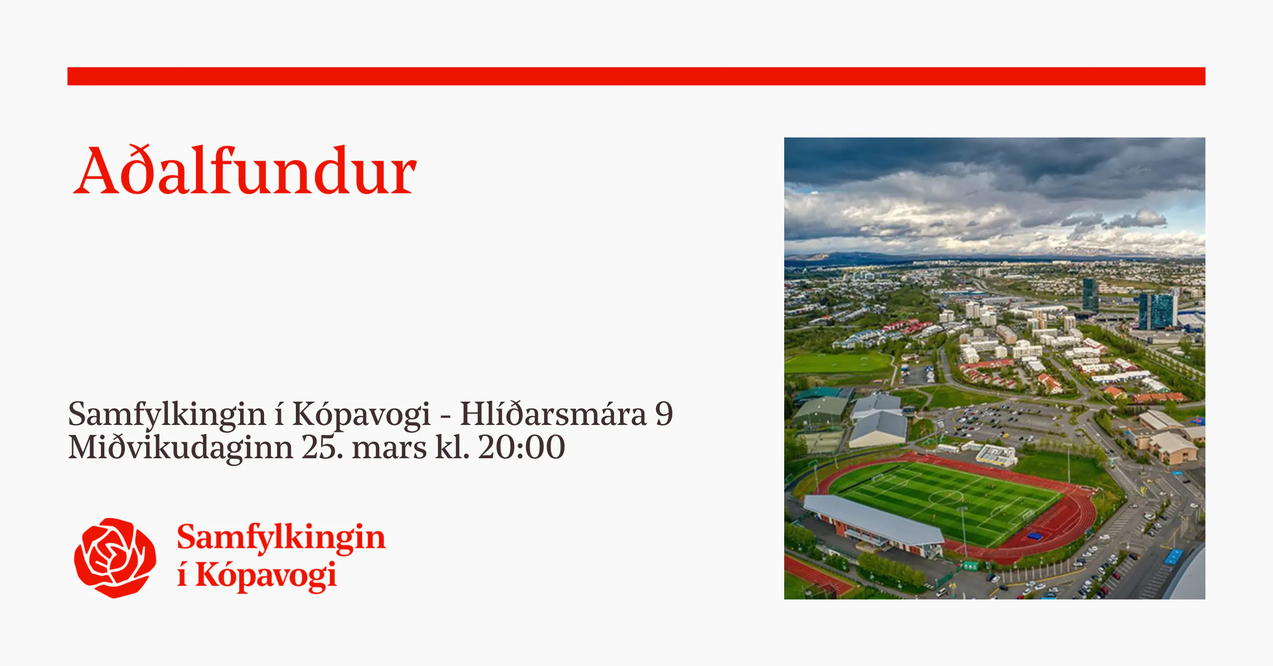 Samfylkingin í Kópavogi minnir á aðalfund félagsins miðvikudaginn 25. mars kl. 20:00 í Hlíðarsmára 9.