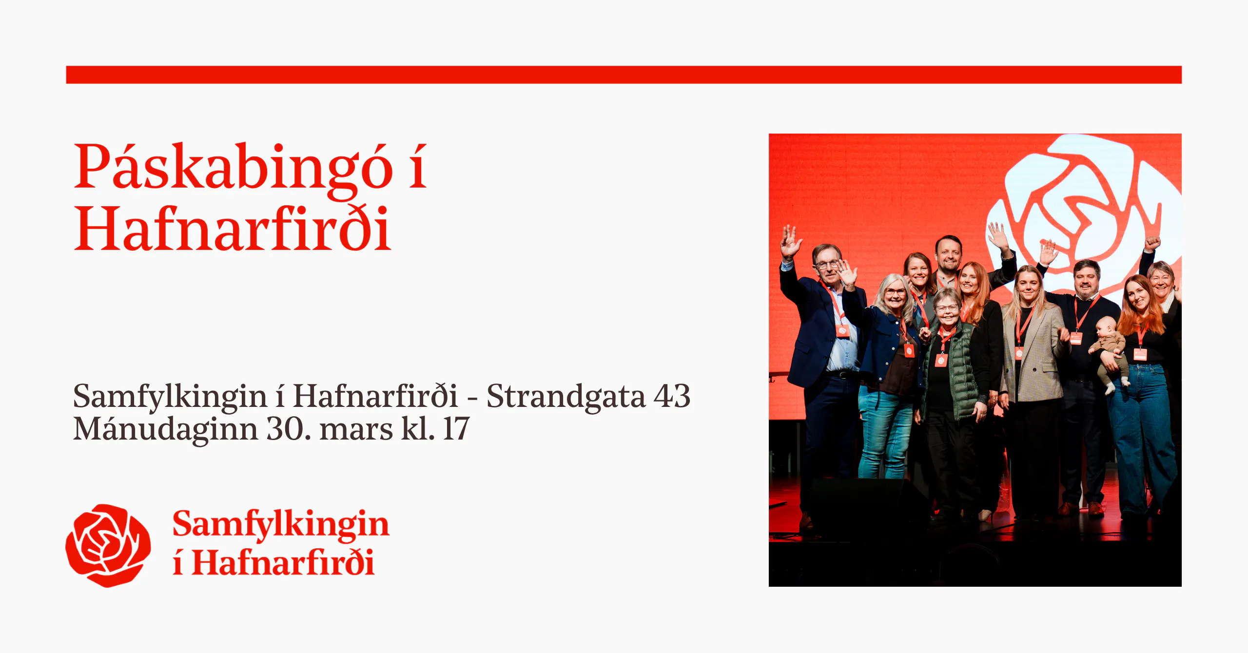 Samfylkingin í Hafnarfirði mun halda páskabingó þann 30. mars kl. 17:00 á Strandgötu 43